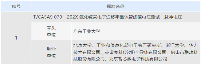 10月22日,按照第三代半導體產(chǎn)業(yè)技術(shù)創(chuàng)新戰(zhàn)略聯(lián)盟標準化委員會(CASAS)相關(guān)管理辦法,經(jīng)CASAS管理委員會投票通過由廣東工業(yè)大學牽頭提出的《氮化鎵高電子遷移率晶體管閾值電壓測試 脈沖電壓法》團體標準立項建議,詳細信息如下:
