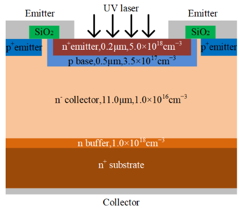 碳化硅光控晶體管(SiC OCT)憑借高光電流增益、高響應(yīng)度及優(yōu)異熱穩(wěn)定性,在光電探測器領(lǐng)域已獲廣泛研究,但作為脈沖功率開關(guān)的應(yīng)用潛力尚未充分挖掘。本研究創(chuàng)新性地將SiC光控晶體管(OCT)與PiN二極管結(jié)構(gòu)單片集成,構(gòu)建出可實現(xiàn)正向阻斷與反向?qū)ǖ膹?fù)合結(jié)構(gòu),并成功制備原型器件,有效改善了關(guān)斷特性并提升了脈沖響應(yīng)速度,為高功率脈沖應(yīng)用提供了新方案。