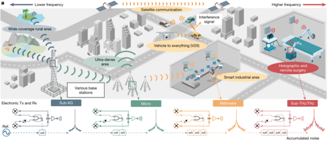 8月27日,北京大學王興軍教授-舒浩文研究員團隊及香港城市大學王騁教授團隊在Nature上在線發(fā)表研究論文《全頻段無線通信的超寬帶集成光電融合芯片》(“Ultrabroadband on-chip photonics for full-spectrum wireless communications”)提出“通用型光電融合無線收發(fā)引擎”概念,成功研制出超寬帶光電融合集成芯片。具有不同于過往傳統(tǒng)方案的多頻段兼容、實時靈活以及快速重構能力徹底克服了帶寬、噪聲性能與可重構性之間難以兼顧的根本挑戰(zhàn)。這一里程碑式的突破為6G通信高效開發(fā)太赫茲,乃至更高頻段的頻譜資源掃清了關鍵障礙。未來,這一突破有望重塑無線通信格局,成為無線通信產(chǎn)業(yè)生態(tài)的技術引擎,推動我國在該領域實現(xiàn)從跟跑、并跑到領跑的跨越式發(fā)展。
