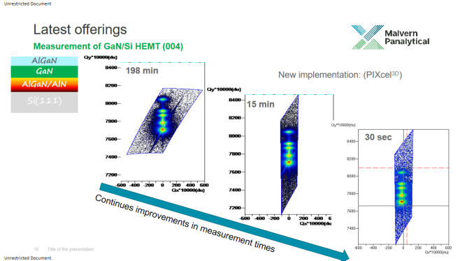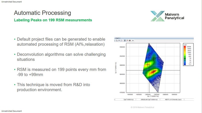 報(bào)告顯示,所使用的配置能夠在晶圓廠環(huán)境中測量和分析平面內(nèi)和平面外掃描;通過自動光學(xué)+自動加載,可以在一分鐘內(nèi)評估平面扭曲。155°2θ以上的平面晶格參數(shù)測量提供了無與倫比的分辨率。RSM在高角度和強(qiáng)傾斜度下進(jìn)行評估,以提高峰值分離和魯棒性。報(bào)告指出,為了更好的應(yīng)對挑戰(zhàn),將在符合潔凈室標(biāo)準(zhǔn)的SecsGem解決方案中的靈活測量模式,不同的硬件選項(xiàng)可優(yōu)化時間或分辨率,面向未來光學(xué)模塊的硬件平臺,深入工具細(xì)節(jié)的合格培訓(xùn)等方面進(jìn)一步拓展。