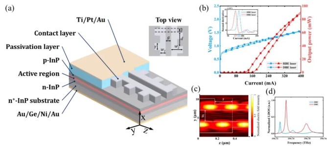 InP基半導(dǎo)體激光器具有光纖傳輸損耗小、受外界環(huán)境干擾小、對(duì)人眼安全等優(yōu)點(diǎn)而廣泛應(yīng)用于光纖通信、數(shù)據(jù)中心、5G網(wǎng)絡(luò)、衛(wèi)星通信、激光雷達(dá)等領(lǐng)域。近期,蘇州納米所納米加工平臺(tái)基于在InP材料外延、器件設(shè)計(jì)、器件制備等方面的積累在InP基半導(dǎo)體激光器領(lǐng)域取得了重要進(jìn)展。