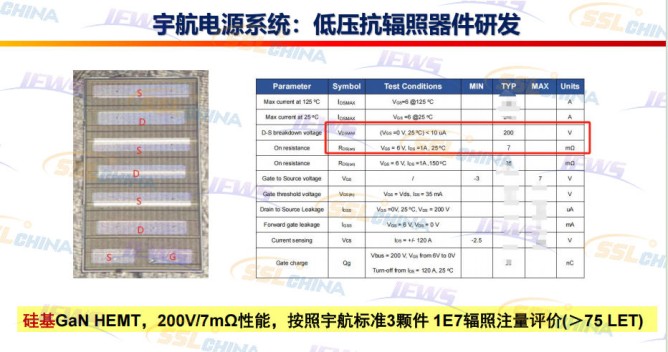 氮化鎵(GaN)功率器件憑借其高頻、高效、耐高溫等特性,成為空間電源系統(tǒng)升級的關(guān)鍵技術(shù)方向?;贏lGaN/GaN異質(zhì)結(jié)界面2DEG工作的功率p-GaN HEMT已廣泛商用。航天抗輻照寬禁帶功率器件的應(yīng)用前景廣闊,GaN功率器件在航空航天領(lǐng)域的優(yōu)勢,現(xiàn)階段宇航電源應(yīng)用需求:功率不太大(幾千瓦到十幾千瓦)、電壓不太高(幾百伏)、能效要求高、體重要求苛刻,GaN功率器件具有高頻、高效、易集成系列性能優(yōu)勢,較容易滿足以上要求,寬禁帶GaN材料具有抗輻照材料優(yōu)勢。GaN橫向功率器件結(jié)構(gòu)有利于提升抗輻照特性,GaN器件天然具有抗總劑量能力,抗單粒子效應(yīng)具有內(nèi)在優(yōu)勢。