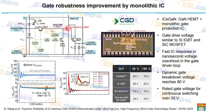 期間,在“氮化鎵功率電子器件技術(shù)”分論壇上,香港大學(xué)先進(jìn)半導(dǎo)與集成電路研究中心副主任、教授張宇昊做了“面向系統(tǒng)應(yīng)用的氮化鎵功率器件的穩(wěn)定性、可靠性和魯棒性”的主題報告。氮化鎵器件通過在效率、開關(guān)頻率等方面實現(xiàn)前所未有的改進(jìn),正在徹底改變電力電子技術(shù)。然而,GaN的材料成分、器件架構(gòu)和操作物理與硅和碳化硅技術(shù)有著根本的不同,這些區(qū)別在穩(wěn)定性、可靠性和魯棒性方面帶來了獨特的挑戰(zhàn),這些挑戰(zhàn)對于實際部署仍然至關(guān)重要。