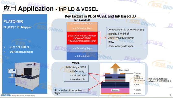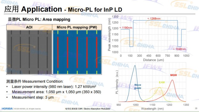 報(bào)告主要介紹了基于HORIBA-EtaMax的光致發(fā)光光譜技術(shù)及其解決方案,在LED,GaAs/InP激光器(VCSEL等),功率器件以及Mini/Micro LED等方面的應(yīng)用,包括測(cè)量PL峰值波長(zhǎng),峰值強(qiáng)度,半高寬,鋁組分,外延層厚度,DBR,BOW等以及SiC缺陷識(shí)別與分類和MicroLED的缺陷檢測(cè)。
