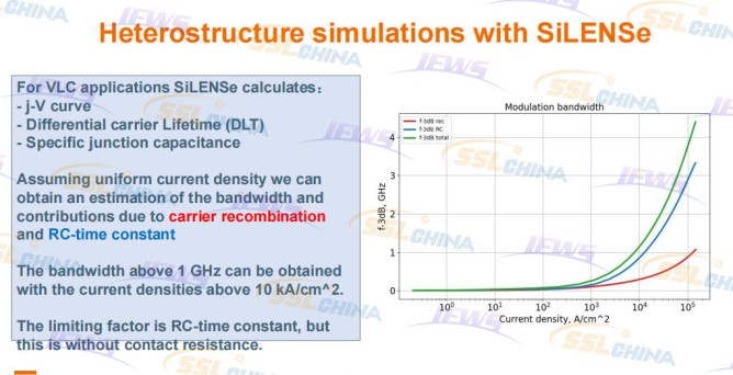 報告展示了STR開發(fā)的SiLENSe和SpeCLED3D軟件包在分析VLC應(yīng)用的LED芯片帶寬方面的能力。該軟件允許研究異質(zhì)結(jié)構(gòu)的動態(tài)特性和芯片特性,如寄生接觸電容。研究了工作電流和芯片尺寸對模型LED芯片帶寬的影響。結(jié)果表明,所使用的軟件是開發(fā)VLC源的有效工具。STR開發(fā)的一套工具可用于設(shè)計VLC應(yīng)用的LED。