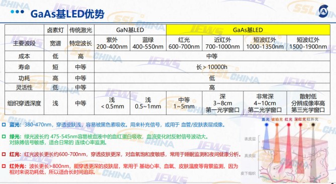 GaAs基LED在光醫(yī)療領(lǐng)域應(yīng)用廣泛,尤其在慢性疼痛緩解、炎癥治療和血氧監(jiān)測(cè)等場(chǎng)景表現(xiàn)突出。相比傳統(tǒng)光源,LED具有波長(zhǎng)選擇范圍廣、光量可控、光色純、壽命長(zhǎng)等優(yōu)勢(shì),更符合光療對(duì)光源的特殊要求。未來(lái),在諸多領(lǐng)域?qū)?shí)現(xiàn)更廣泛的應(yīng)用。