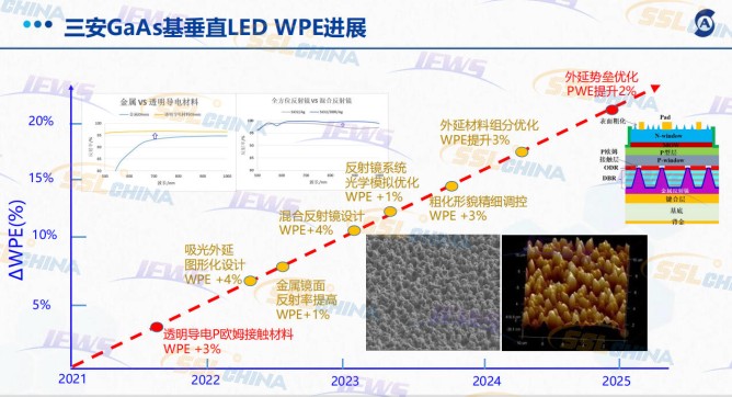 期間,天津三安光電有限公司芯片開(kāi)發(fā)部部長(zhǎng)高守帥受邀參會(huì),并在“光醫(yī)療與健康技術(shù)”分會(huì)上帶來(lái)了《光醫(yī)療應(yīng)用GaAs基LED光源現(xiàn)狀和技術(shù)挑戰(zhàn)》的主題報(bào)告,介紹了紅光LED光源(600nm-780nm)、近紅外LED光源(780nm~1700nm)在內(nèi)窺鏡、醫(yī)療美容、智能穿戴(心率/血氧/血糖檢測(cè))等醫(yī)療領(lǐng)域的應(yīng)用進(jìn)展,面臨的技術(shù)挑戰(zhàn)及解決方案。重點(diǎn)介紹針對(duì)光醫(yī)療應(yīng)用LED芯片提高光電轉(zhuǎn)換效率、降低電壓、提高波長(zhǎng)一致性、降低半波寬等方面做的工作、取得的成果,并探討了未來(lái)的光醫(yī)療應(yīng)用LED光源的技術(shù)挑戰(zhàn)與發(fā)展方向。