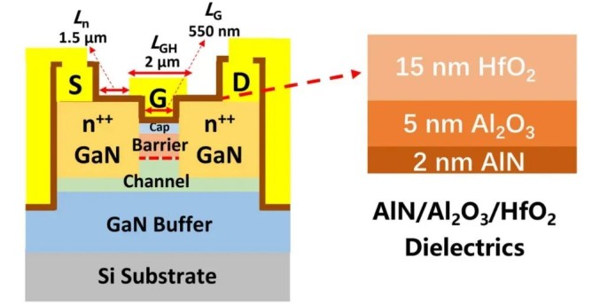 該研究成果以AlGaN/GaN MIS-HEMT Nominally Free of Access Regions on Si for Low-Voltage RF Applications為題發(fā)表于國際微波射頻領(lǐng)域權(quán)威期刊IEEE Microwave and Wireless Technology Letters。論文第一作者為張新堃博士,現(xiàn)為團(tuán)隊(duì)在站博士后。