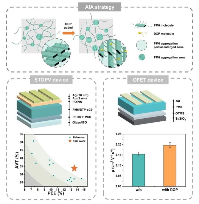 有機(jī)半導(dǎo)體因其柔韌性、輕質(zhì)和溶液可加工性等優(yōu)點(diǎn),在柔性電子、半透明光伏等領(lǐng)域展現(xiàn)出廣闊應(yīng)用前景。然而,其分子間作用力較弱,易在薄膜中形成無(wú)序聚集結(jié)構(gòu),導(dǎo)致能量無(wú)序度較高,成為制約器件性能提升的關(guān)鍵瓶頸。針對(duì)這一挑戰(zhàn),四川大學(xué)高分子科學(xué)與工程學(xué)院程沛研究員/王嘉宇副研究員團(tuán)隊(duì)聯(lián)合北京大學(xué)周歡萍教授團(tuán)隊(duì),創(chuàng)新性地提出了一種利用鄰苯二甲酸酯類分子作為“組裝誘導(dǎo)劑”的策略,通過(guò)調(diào)控有機(jī)半導(dǎo)體側(cè)鏈的相互作用,有效提升了分子堆積的有序性,顯著降低了材料的能量無(wú)序度,進(jìn)而顯著改善了器件性能,對(duì)于制造高性能的有機(jī)電子器件具有重要的研究意義。相關(guān)成果以《Suppressing Energetic Disorder of Organic Semiconductors for Semitransparent Photovoltaics and Thin-Film Transistors》為題發(fā)表在Advanced Materials上。