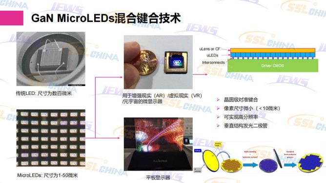 3D IC混合鍵合工藝的核心優(yōu)勢(shì)包括可實(shí)現(xiàn)3~10微米的超細(xì)間距,降低寄生效應(yīng)并提升均勻性;與后端制程(BEOL)兼容,支持高速信號(hào)傳輸;熱阻更低,有助于提升芯片散熱效率。該工藝通過(guò)金屬-金屬直接鍵合,避免傳統(tǒng)焊錫凸點(diǎn)的工藝限制(如小尺寸焊錫凸點(diǎn)易疲勞、缺陷率高等),為3D IC的高密度集成、低延遲互連提供了關(guān)鍵技術(shù)支撐。GaN MicroLEDs混合鍵合技術(shù)通過(guò)晶圓級(jí)對(duì)準(zhǔn)鍵合實(shí)現(xiàn)微米級(jí)尺寸MicroLED(1-50微米)與驅(qū)動(dòng)CMOS的高密度集成,相比傳統(tǒng)LED(數(shù)百微米),可實(shí)現(xiàn)像素尺寸<10微米,支持垂直結(jié)構(gòu)發(fā)光二極管,適用于增強(qiáng)現(xiàn)實(shí)(AR)、虛擬現(xiàn)實(shí)(VR)及元宇宙微型顯示等場(chǎng)景,推動(dòng)顯示器件向小型化、高分辨率方向發(fā)展。