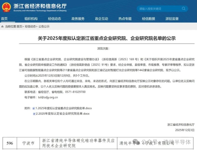 近日,浙江省經(jīng)濟(jì)和信息化廳公布了2025年新認(rèn)定省級(jí)企業(yè)研發(fā)機(jī)構(gòu)名單。經(jīng)過嚴(yán)格的評(píng)審和公示,清純半導(dǎo)體榮獲“浙江省企業(yè)研究院”的認(rèn)定,標(biāo)志著清純半導(dǎo)體的科技創(chuàng)新與研發(fā)實(shí)力得到進(jìn)一步認(rèn)可,該認(rèn)定將為企業(yè)高質(zhì)量發(fā)展注入新動(dòng)力。