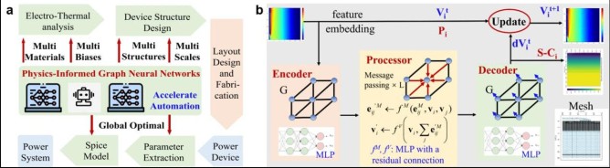 圖1 (a) 統(tǒng)一電熱建模與優(yōu)化框架;(b) 編碼-處理-解碼核心架構(gòu)
