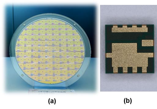 圖1. 8英寸100 V GaN-on-Si E-HEMT晶圓與高散熱封裝樣品照片