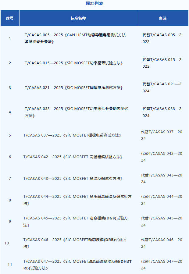 為推動聯盟標準化工作緊隨產業(yè)發(fā)展,保證標準技術內容的科學性、合理性,提高標準應用的適用性,聯盟標準化委員會啟動11項GaN/SiC功率器件標準的修訂,并于2025年12月30日發(fā)布修訂稿,具體見標準列表。