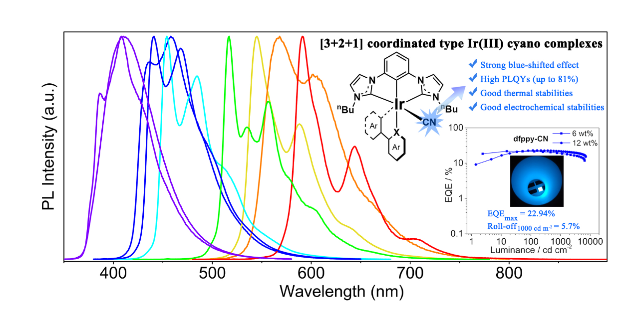 深圳普瑞材料及合作高校Chemical Science:新型[3 + 2 + 1]磷光銥金屬配合物實(shí)現(xiàn)高效藍(lán)光OLED器件