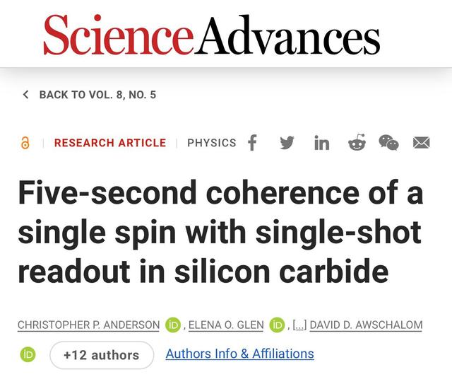 重大突破!碳化硅量子比特刷新紀(jì)錄:量子態(tài)保持超5秒,信號(hào)增強(qiáng)萬倍