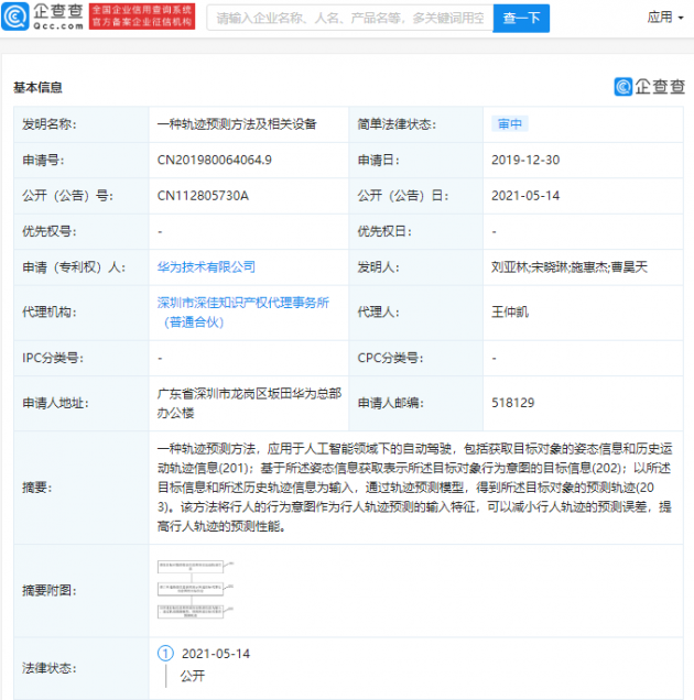 華為公開(kāi)“軌跡預(yù)測(cè)方法”相關(guān)專(zhuān)利,應(yīng)用于人工智能自動(dòng)駕駛