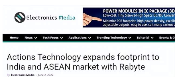炬芯科技攜手Rabyte Electronics布局海外市場
