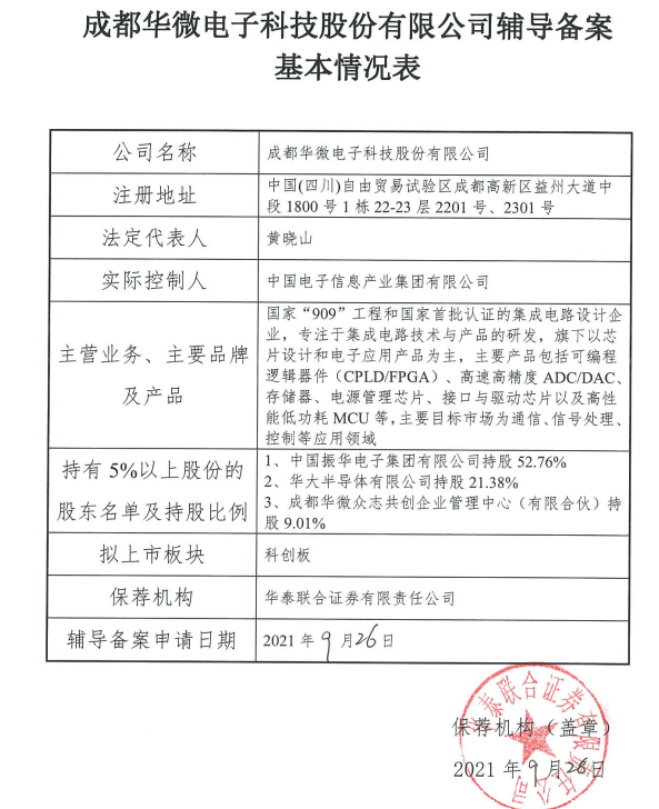 控人為中國電子信息產(chǎn)業(yè)集團 成都華微電子擬科創(chuàng)板