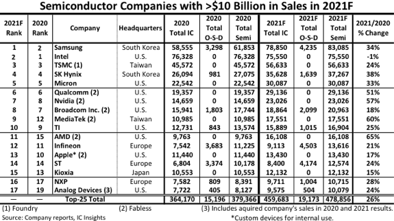 IC Insights:2021年