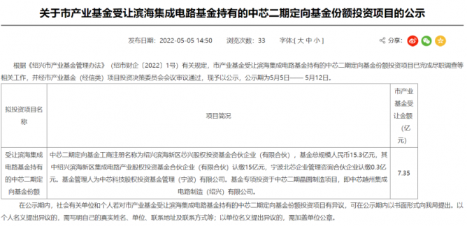 ,投資中芯紹興二期晶圓制造項(xiàng)目