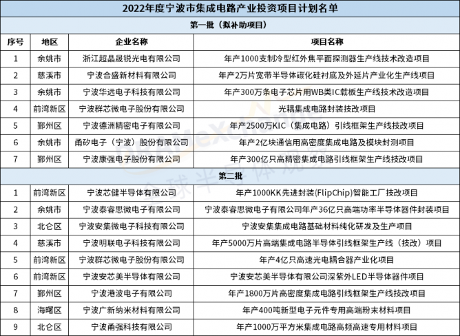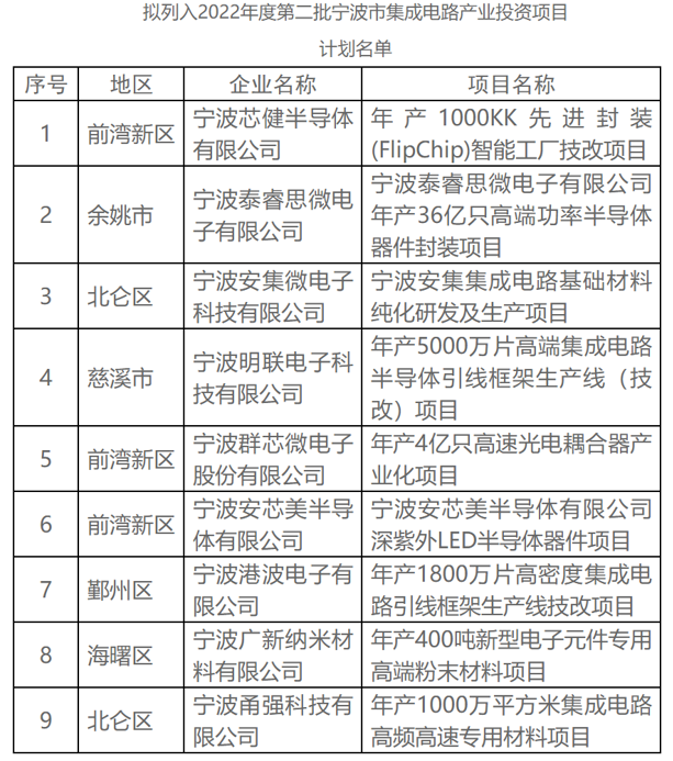 寧波2022年度第二批集成電路產(chǎn)業(yè)投資項(xiàng)目計(jì)劃名單