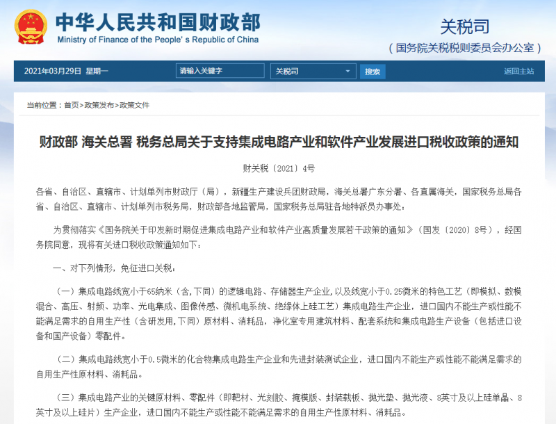 三部委發(fā)文促進(jìn)集成電路產(chǎn)業(yè)發(fā)展,免征進(jìn)口