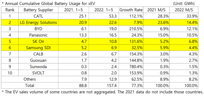領(lǐng)跑今年1月-5月電動(dòng)汽車電池市場