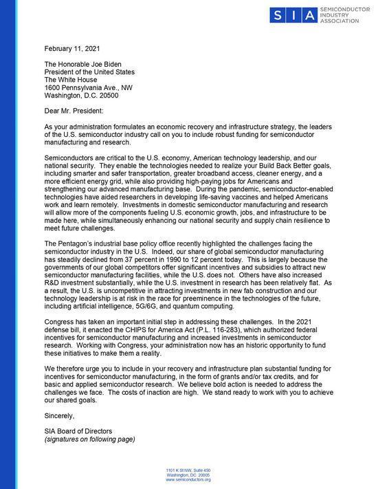 SIA發(fā)布關(guān)于