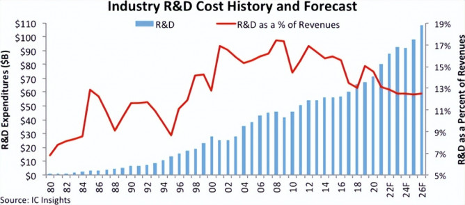IC Insights:2022年全球半導體研發(fā)
