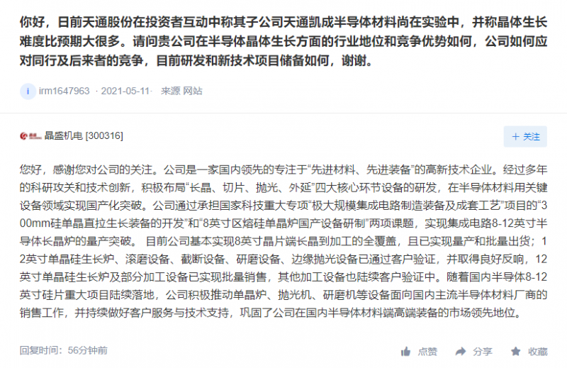 :12英寸單晶硅生長(zhǎng)爐及部分加工設(shè)備已實(shí)現(xiàn)批量銷售