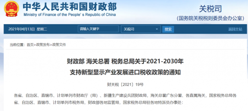 財(cái)政部等發(fā)布支持新型顯示產(chǎn)業(yè)發(fā)展進(jìn)口