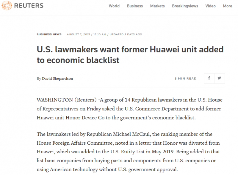 防華為“藕斷絲連”,美議員提議將