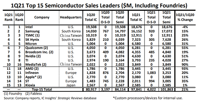 出爐,英特爾仍是世界最大芯片供應(yīng)商