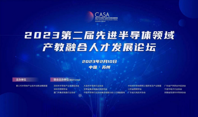 由第三代半導(dǎo)體產(chǎn)業(yè)技術(shù)創(chuàng)新戰(zhàn)略聯(lián)盟及其他12家行業(yè)組織聯(lián)合主辦的“2023年第二屆先進(jìn)半導(dǎo)體領(lǐng)域產(chǎn)教融合人才發(fā)展論壇”(第八屆國(guó)際第三代半導(dǎo)體論壇暨第十九屆中國(guó)國(guó)際半導(dǎo)體照明論壇分論壇)于2023年2月10日在蘇州金雞湖凱賓斯基大酒店隆重舉行。